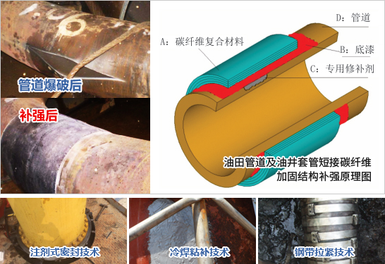 技術(shù)原理油田管道及油井套管短接碳纖維加固結(jié)構(gòu)補強技術(shù)做為一種快捷的新型修復(fù)技術(shù),已經(jīng)在油氣管道和井口套管短接維護和大修中得到應(yīng)用,適用于溫度350攝氏度以下的各種介質(zhì)的低、中、高壓管線和井口套管短接。其優(yōu)點是免焊不動火,極大地降低了操作的風(fēng)險性,提高了施工的安全性,可以帶壓修復(fù),保障管道運行的不間斷。碳纖維材料... <詳情+> -